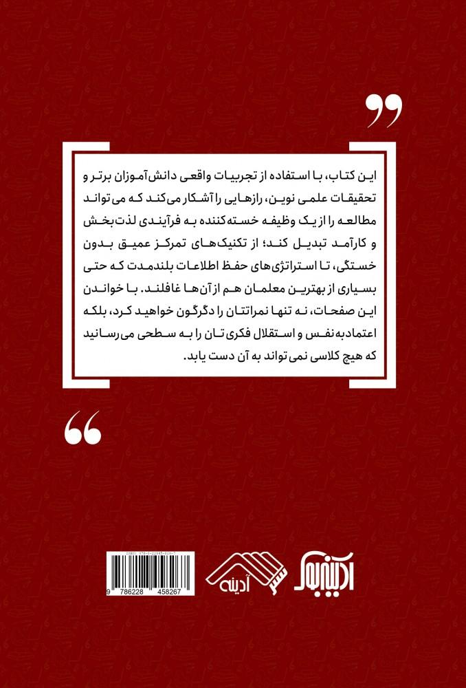 کتاب «یکصد راز مطالعه که معل م های شما نمی خواهند بدانید» نوشته آرون ریچاردسون و به ترجمه سپیده بیات ترک، راهنمایی جامع و عملی برای تحول در شیوه ی یادگیری شماست. این کتاب با شکستن قواعد سنتی مطالعه، رازهایی را افشا می کند که می تواند نمرات و کارایی تحصیلی شما را به طور چشمگیری ارتقا دهد. برخلاف روش های خسته کننده و زمان بر، این اثر بر مطالعه ی هوشمندانه، هدفمند و لذت بخش تأکید دارد. «یکصد راز مطالعه» به شما یاد می دهد چگونه کمتر مطالعه کنید، اما بیشتر یاد بگیرید و نتایج بهتری بگیرید. این کتاب برای دانش آموزان، دانشجویان و حتی معلمانی که به دنبال روش های نوین آموزش هستند، بسیار ارزشمند است. محتوای آن پر از تکنیک های کاربردی برای مدیریت زمان، تقویت حافظه، تمرکز ذهن و کاهش استرس امتحان است. عنوان جذاب این کتاب—که اشاره به رازهایی دارد که «معلمها نمی خواهند بدانید»—در واقع تشویقی است برای فکر کردن مستقل و فراتر از چارچوب های مرسوم. این کتاب «راهنمای قطعی برای کسب نمرات برجسته با شکستن تمام قواعد سنتی» است . همچنین، این اثر به شما یادآوری می کند که «در واقعیت، مطالعه یعنی یادگیری آنچه می خواهید بیاموزید» . با خواندن این کتاب، یاد می گیرید چگونه انگیزه ی درونی خود را تقویت کنید و از فرآیند یادگیری لذت ببرید. چاپ این کتاب توسط نشر آدینه در سال ۱۴۰۴، آن را به یکی از بهترین منابع فارسی در حوزه ی خودآموزی و مهارت های یادگیری تبدیل کرده است. این کتاب نه تنها روش های مطالعه، بلکه نگرش شما نسبت به آموزش و یادگیری را دگرگون خواهد کرد . با «یکصد راز مطالعه»، دیگر نیازی به ساعات طولانی مطالعه بدون بازده نخواهید داشت. کتابی که خواندن آن می تواند مسیر موفقیت تحصیلی شما را هموار کند. اگر به دنبال مطالعه ی کم زمان، پربازده و هوشمندانه هستید، این کتاب گنجینه ای است که نباید از آن غافل شد. «یکصد راز مطالعه» راهی است برای تبدیل شدن به یک یادگیرنده مستقل و موفق. این کتاب در مجموعه منابع خودیاری آموزشی جایگاه ویژه ای دارد . ترجمه روان و دقیق سپیده بیات ترک، مفاهیم را برای مخاطب فارسی زبان کاملا در دسترس کرده است. برای هر کسی که می خواهد از زمان مطالعه ی خود بیشترین بهره را ببرد، این کتاب ضروری است. کتابی که راز موفقیت تحصیلی را در قالب ۱۰۰ نکته ی کاربردی با شما درمیان می گذارد. مطالعه ی این کتاب می تواند نقطه ی عطفی در سبک یادگیری شما باشد. «یکصد راز مطالعه»—راهنمایی برای مطالعه هوشمندانه و موفقیت فراتر از کلاس درس.